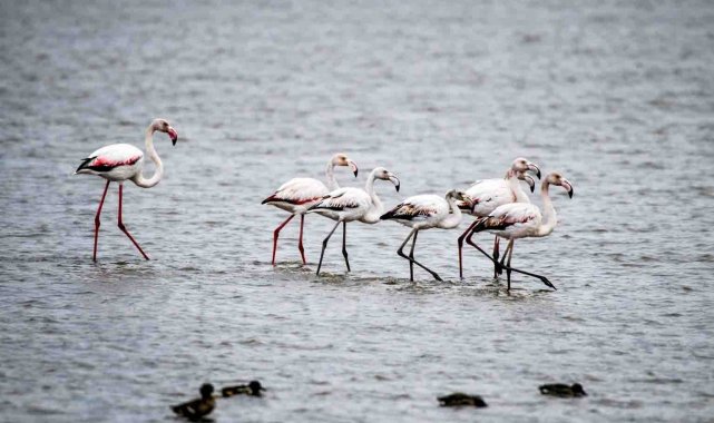 SAMSUN (İHA) – Samsun'un Kızılırmak Deltası Kuş Cenneti, baharın gelişiyle zarif misafirleri flamingoları ağırlamaya başladı. Flamingoların gelişi ile görsel şölenin başladığı Kuş Cenneti, doğaseverlere ve fotoğrafçılara muhteşem kareler sundu.