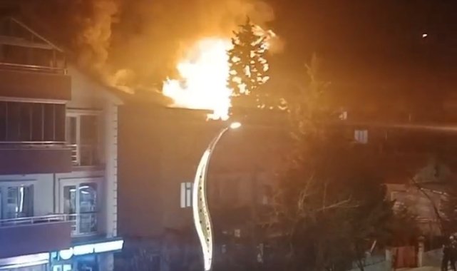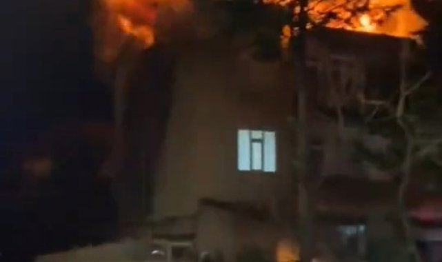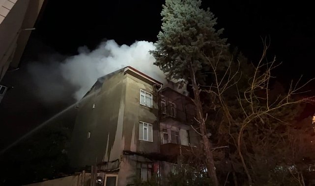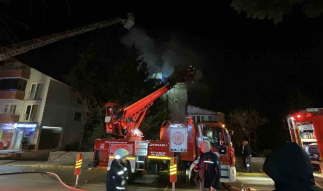 Kocaeli'de 3 katlı binanın çatısı alev alev yandı