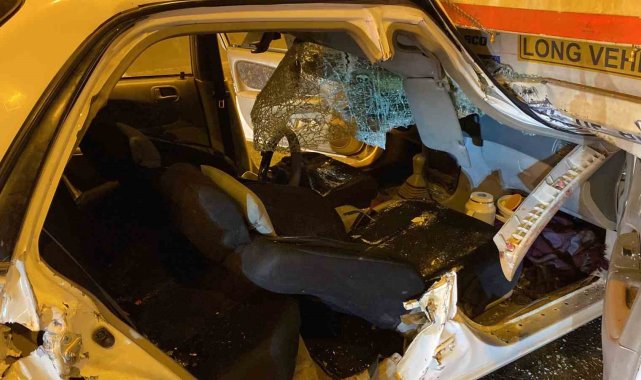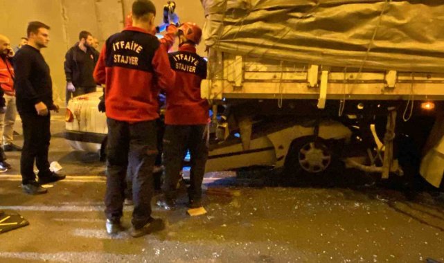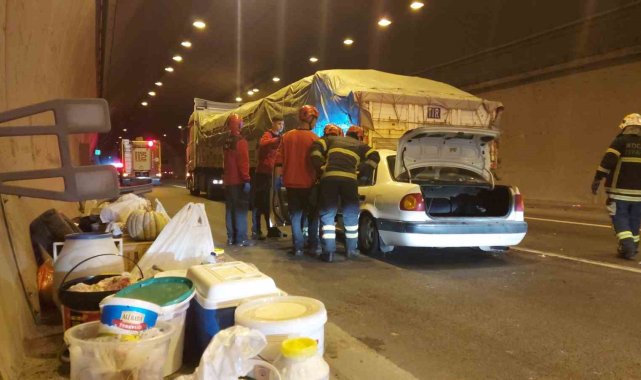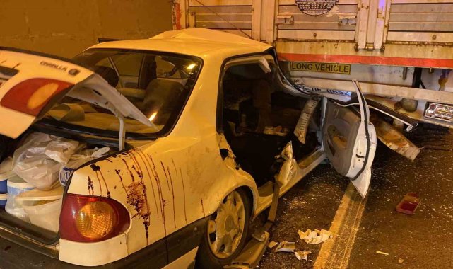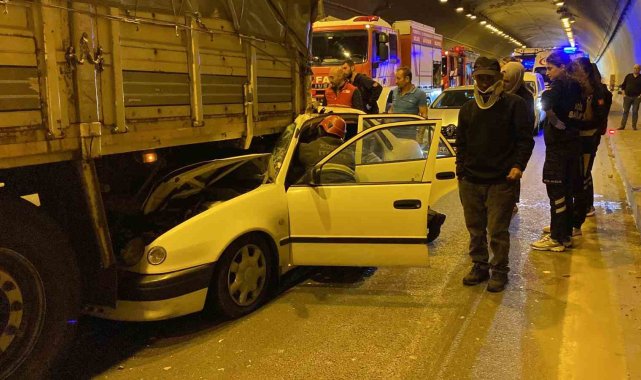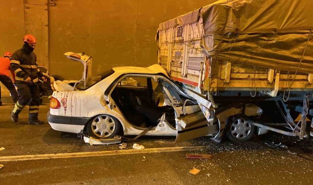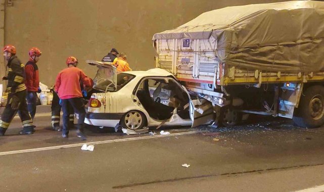 TEM Otoyolu Kocaeli geçişinde tıra arkadan çarpan otomobilde bulunan 2 kişi sıkıştı. Tırın altında kalan otomobilden itfaiye ekipleri tarafından çıkarılan yaralılar hastaneye kaldırıldı.Kaza, İzmit ilçesi TEM Otoyolu İstanbul istikameti Gültepe Tüneli'nde meydana geldi. Edinilen bilgiye göre, İsmet A. idaresindeki 34 YM 6858 Toyota marka otomobil, 34 FUE 856 plakalı Mercedes marka tıra arkadan çarptı. Çarpmanın şiddetiyle otomobilin yarısı tırın altına girdi. Korkunç kazayı gören vatandaşlar 112 Acil Çağrı Merkezi'ne haber verdi. İhbar üzerine olay yerine sağlık, itfaiye, jandarma ve karayolları ekipleri sevk edildi. Kısa sürede olay yerine gelen ekipler, otomobilde sıkışan karı-kocayı çıkarmak için çalışma başlattı. Titiz çalışma sonrasında itfaiye ekipleri tarafından araçtan çıkarılan İsmet A. ve Gülsen A. çifti, sağlık ekiplerine teslim edildi. İlk müdahaleleri yapılan çift, hastaneye kaldırıldı. Çiftin memleketten İstanbul'a döndükleri öğrenildi. İtfaiye ekipleri tarafından araçta bulunan kışlık erzaklar çıkarılarak muhafaza altına alındı.Kaza sebebiyle İstanbul istikametinde 7 kilometrelik trafik oluştu. Jandarma ekipleri, kontrollü olarak yolu tek şeritten trafiğe açtı.Olayla ilgili inceleme başlatıldı.