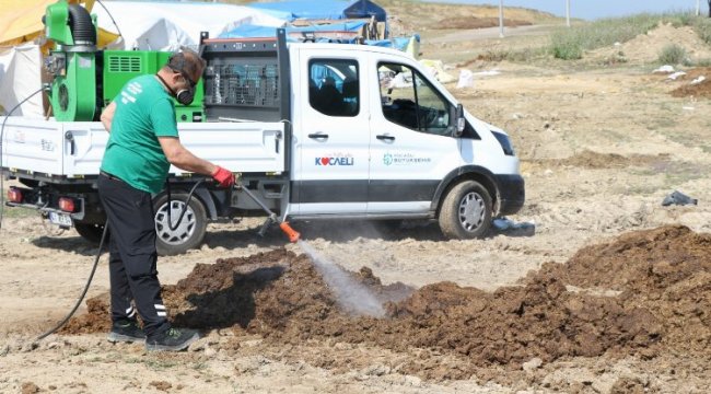 Kocaeli Büyükşehir Belediyesi 6 ilçede kurulan kurban çadırlarında periyodik olarak ilaçlama uygulaması yapıyor
