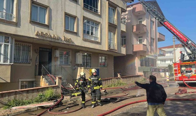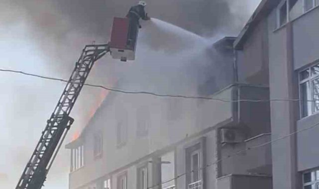 Kocaeli'de tadilatta olan binanın çatısı alevlere teslim oldu