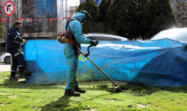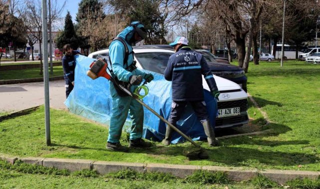 Kocaeli'de yeşil alan bakımlarında araçlar brandalarla korunuyor