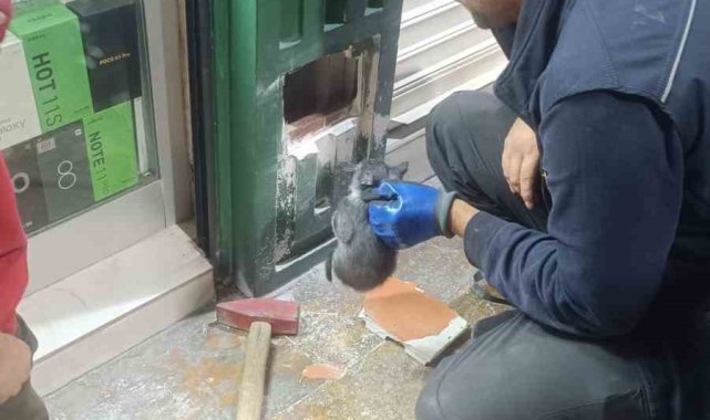 Kolon boşluğuna düşen 2 yavru kedi, itfaiye ekipleri tarafından kurtarıldı