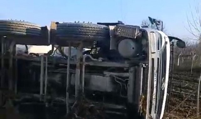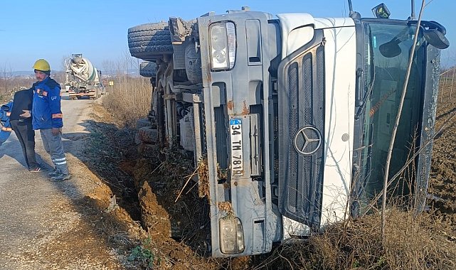 Bursa'nın İnegöl ilçesinde meydana gelen kazada kontrolden çıkan beton mikseri devrildi; sürücüsü yaralandı.