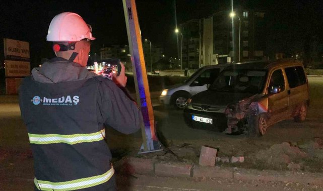 Kontrolden çıkan hafif ticari araç, aydınlatma direğine çarptı