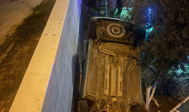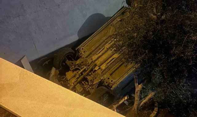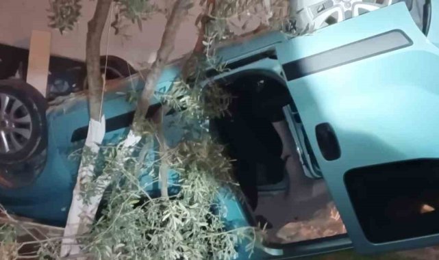 Kontrolden çıkan hafif ticari araç bahçeye uçtu: 4 yaralı