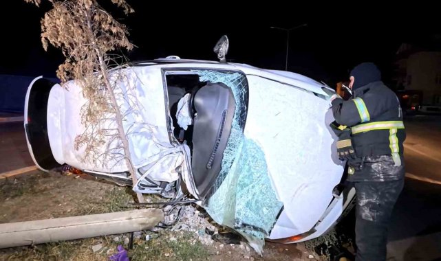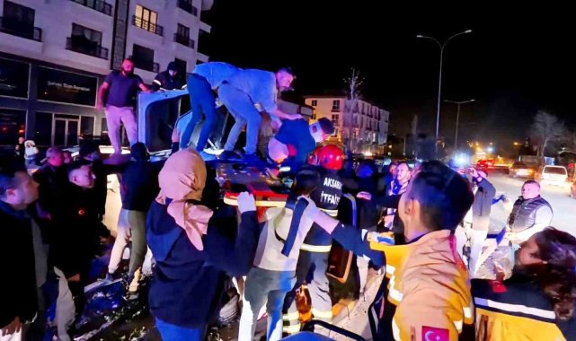 Aksaray'da kontrolden çıkan otomobil, refüjdeki ağaca çarptı ardından aydınlatma direğini devirdi. Hurdaya dönen araçta sıkışan 2 kişi, ekipler ve vatandaşlar tarafından kurtarılırken, o anlar kameralara yansıdı.Kaza, Zafer Mahallesi Nevşehir Caddesi üzerinde yaşandı. Edinilen bilgiye göre, Nevşehir Caddesinden TOKİ konutları istikametine seyreden Berat A. (18) idaresindeki 68 ADK 368 plakalı Volkswagen marka otomobil sürücüsünün direksiyon hakimiyetini kaybetmesi sonucu kontrolden çıkarak refüje çıktı. Önce ağaca sonrada aydınlatma direğine çarparak deviren otomobil adeta hurdaya dönerken, kazayı gören diğer araç sürücüleri durumu 112 Acil Çağrı Merkezine bildirdi. İhbar üzerine olay yerine polis, AFAD, sağlık ve itfaiye ekibi sevk edildi.Kısa sürede kaza mahalline gelen ekipler kurtarma çalışması yaparken, yan devrilen araç içinde sıkışan sürücü ve yanında bulunan Berke Cem T. (18) isimli arkadaşı vatandaşların, itfaiye ve sağlıkçıların müdahalesiyle çıkarıldı. Yaralılar sedye ile ambulansa taşınırken, ilk müdahalelerinin ardından Aksaray Eğitim ve Araştırma Hastanesi Acil Servisine kaldırıldı. Burada tedavi altına alınan yaralı gençlerin sağlık durumlarının iyi olduğu öğrenilirken, polis kazayla ilgili inceleme başlattı.Öte yandan, yaralıların kurtarılma anları ise kameraya yansıdı.