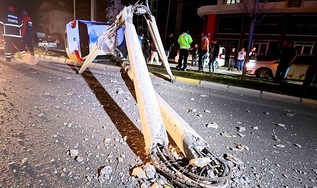Kontrolden çıkan otomobil, direği ve ağacı devirdi: 2 kişi yaralandı, kurtarma anları kamerada