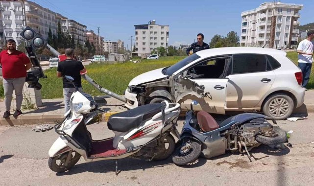 Adıyaman'da, sürücüsünün kontrolünden çıkan otomobilin ışıklarda duran bir otomobil ve iki motosiklete çarpması sonucu 3 kişi yaralandı.