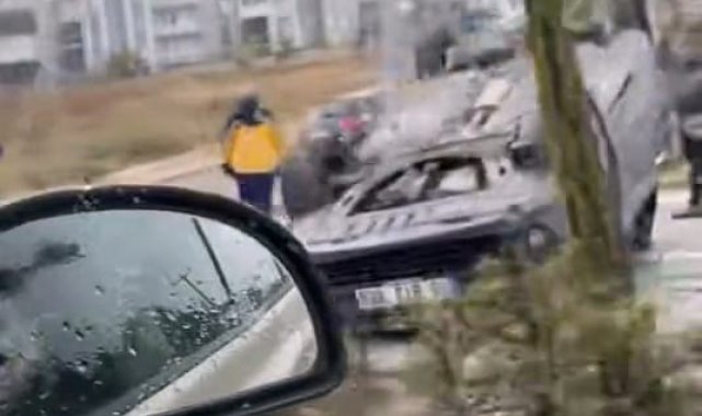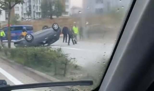 Bursa'nın İnegöl ilçesinde kontrolden çıkarak takla atan otomobilin sürücü hafif şekilde yaralandı.