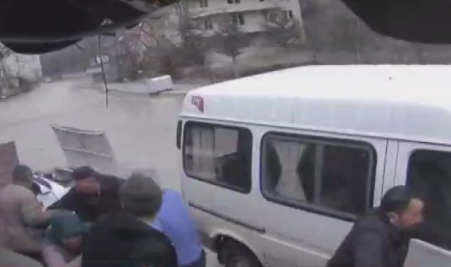 Kastamonu'da kontrolden çıkan FIAT-TOFAŞ marka otomobil, evinin önünde bekleyen kalabalığın üzerine sürüklendikten sonra direğe çarpıp ters dönerek bahçeye girdi. Korku dolu o anlar güvenlik kamerasına saniye saniye yansıdı.Kaza, Mehmet Akif Ersoy Mahallesi Sepetçioğlu Sokak'ta meydana geldi. Edinilen bilgiye göre, kendisini ziyarete gelen misafirlerini uğurlamak için evinin önüne çıkan vatandaşlar, minibüsün yanında sohbet ettikleri sırada sürücüsü ve plakası henüz belirlenemeyen FIAT-TOFAŞ marka otomobil virajı alamayarak kalabalığın üzerine doğru sürüklendi. Kontrolden çıkan otomobil önce evin önündeki ahşap direğe çarptı, ardından ters dönerek demir kapıyı kırıp bahçeye girdi. Kazada direk devrilirken, evin önünde bulunan vatandaşlar ise son anda kurtuldu. Facianın eşiğinden dönülen kaza anı, saniye saniye güvenlik kamerasına yansıdı. Sürücüsünün yaralanmadığı otomobilde ise büyük çapta maddi hasar oluştu.Evine misafirinin geldiğini anlatan ev sahibi Selahattin Tezcan, "5-6 kişi evin önünde minibüsün yanında duruyorduk. Biz kapıdan çıkıp minibüsün yanında kaldırımda betonun üzerine çıkıp sohbet ederken arkamızdan bir ses geldi. Arkamı dönünce taksi, burada ağaç vardı ona vurdu, ters dönüp kapıyı kırıp içeriye girdi. Bizler, 10 saniye daha evin önünde oyalansak, minibüsün yanına kaldırıma çıkmasak 5-6 kişi belki de şimdi gitmiştik. Allah bizleri sakladı. Her şey böyle oldu, korktuk biz, korkulmaz mı taksi vurur da" dedi.Kazada herhangi bir yaralanmanın olmadığını belirten Tezcan, "Sadece direk yıkıldı. Kapıyı kırıp içeriye girdi. Araçta biraz hasar vardı. Sürücüde iyiydi. Bir şeyi yoktu. Kimsede yaralanma yoktu. Sürücü sonra aracını alıp gitti" diye konuştu.