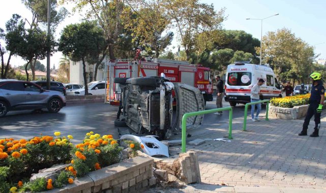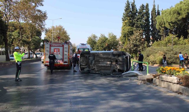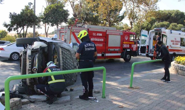 Aydın'ın Efeler ilçesinde seyir halindeyken kontrolden çıkan ve kaldırıma çarparak yan yatan otomobil sürücüsü kadın yaralandı.Kaza, Efeler ilçesi İzmir Bulvarı üzerinde meydana geldi. Edinilen bilgiye göre, 45 AAU 58 plakalı otomobil sürücüsü B.Ç., henüz bilinmeyen bir nedenle direksiyon hakimiyetini kaybetti. Hakimiyeti kaybolan otomobil, yol kenarında bulunan kaldırıma çarparak yan yattı. Kazayı görenler durumu 112 Acil Çağrı Merkezi'ne bildirdi. İhbar üzerine bölgeye polis, itfaiye ve sağlık ekipleri sevk edildi. Kısa sürede olay yerine gelen sağlık ekipleri, araçtan kendi imkanlarıyla çıkan yaralı sürücüyü, ilk müdahalenin ardından ambulansla hastaneye kaldırdı. Trafik ekipleri yolda güvenlik önlemi alırken, itfaiye ekiplerince yan yatan araç düzeltilerek, yoldan çekilmesini sağladı. Kazada yaralanan sürücü B.Ç.'nin hayati tehlikesinin olmadığı öğrenilirken, kaza ile ilgili inceleme başlatıldı.