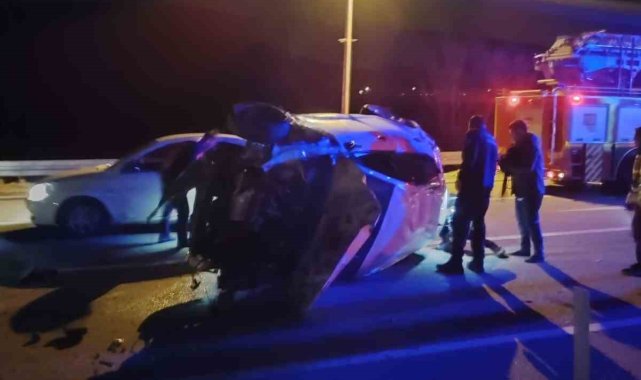 Kayseri'nin Bünyan ilçesinde kontrolden çıkan otomobil yan yattı.