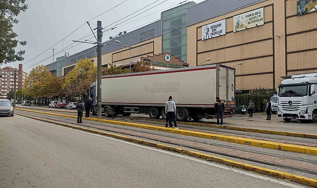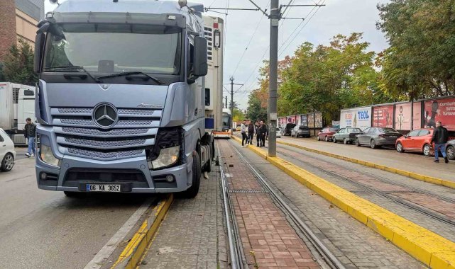 Kontrolden çıkan tır tramvay yoluna girdi, seferler aksadı