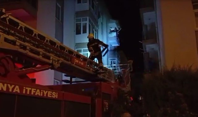 Konya'da balkonda mahsur kalan kedi kurtarıldı