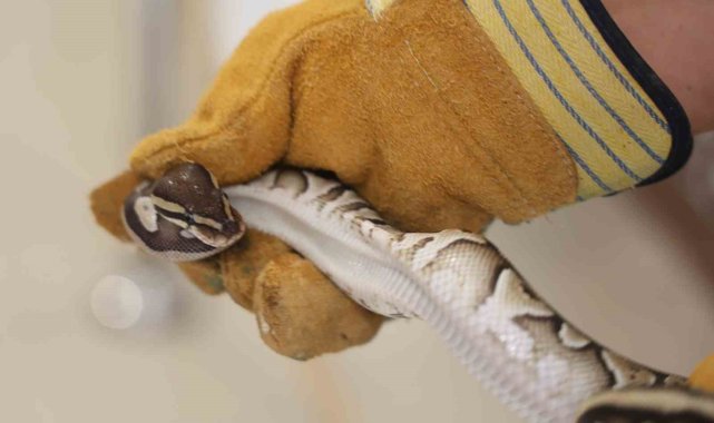 Konya'da bir şahsın cebinden çıkan yavru piton yılanı koruma altına alındı