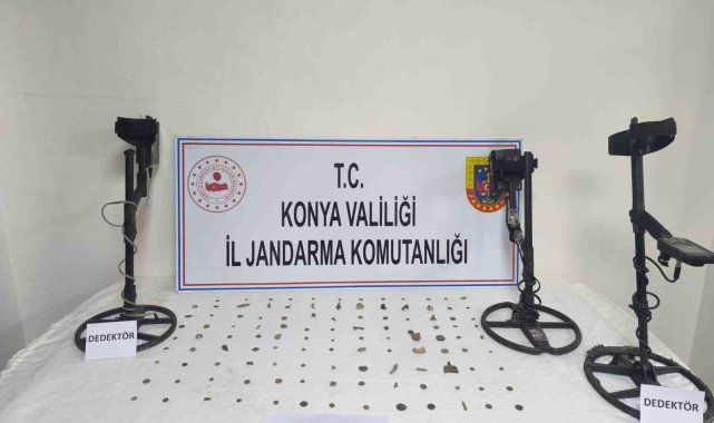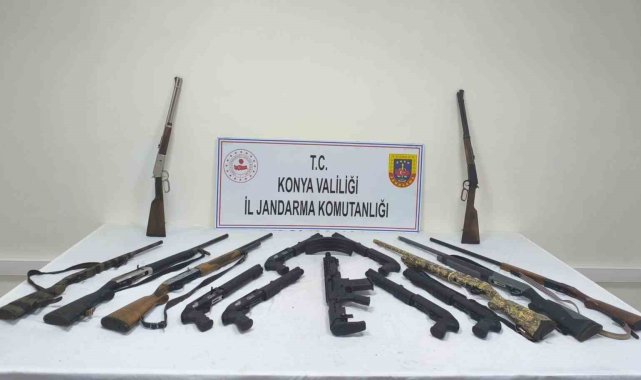 Konya'nın Beyşehir ilçesinde jandarma ekiplerince bir bağ evi ve ağılında yapılan aramada, seri numarası olmayan çok sayıda tabanca, yivsiz av tüfeği, tarih eserler ve alkol yapımında kullanılan ham madde ele geçirildi.
