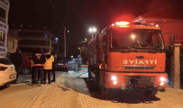 Konya'da park halindeki otomobil alev alev yandı