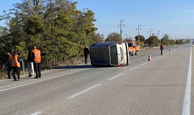 Konya'da sürücüsü uyuyan minibüs devrildi