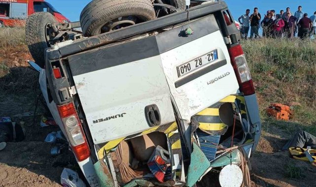 Konya'da tarım işçilerini taşıyan minibüs devrildi: 15 yaralı