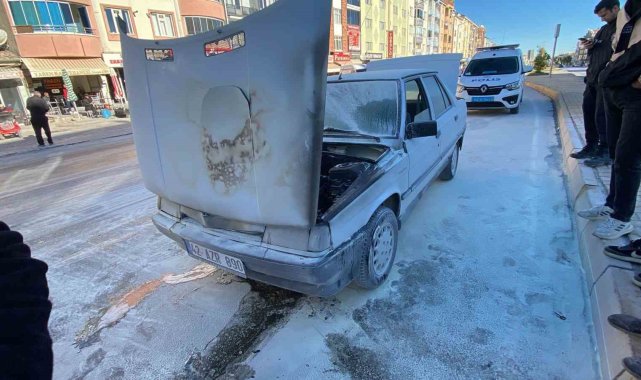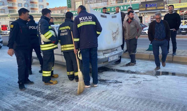 Konya'nın Kulu ilçesinde trafik ışıklarında bekleyen bir otomobilde yangın çıktı. Yangın çevredeki vatandaşlar tarafından büyümeden söndürüldü.