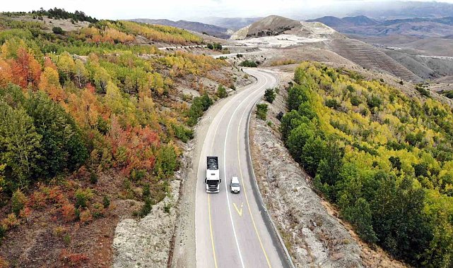 Bayburt'ta sonbahardan kışa geçişte 2 bin 400 rakımlı Kop Dağı güzergâhında renk cümbüşü oluşturan ağaçlar farklı bir güzelliğe büründü.