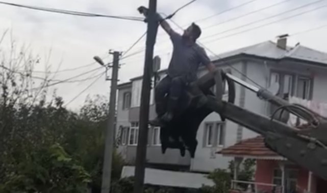 Düzce'de köpeklerden kaçarak tırmandığı telefon direğinde mahsur kalan kedi, Düzce Belediyesi ekiplerinin kepçeli operasyonuyla kurtarıldı.Olay, Karaca Mahallesi'nde meydana geldi. Sokak köpeklerinden kaçan bir kedi, tırmandığı telefon direğinden inemedi. Kedinin direkte mahsur kaldığını fark eden çevredeki vatandaşlar, durumu ilgili birimlere bildirdi. Bu esnada bölgede yol onarım çalışması yürüten Düzce Belediyesi Fen İşleri Müdürlüğü ekipleri, kediyi kurtarmak için çalışma başlattı. Ekipler, kepçeyi direğe yaklaştırdı ancak kedinin aşağı inmemesi üzerine bir personel kepçenin kovasına binerek direğe ulaştı. Personel, kediyi bulunduğu yerden alarak güvenli bir şekilde sokağa indirdi.Çocukların alkışlarla destek verdiği kurtarma operasyonu, çevredeki vatandaşlar tarafından cep telefonu kamerasıyla anbean kaydedildi.