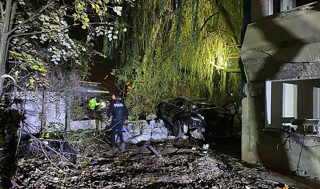 Köprü üstünde çarpışan otomobiller bahçeye uçtu: 1 ölü, 4 yaralı