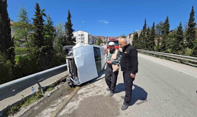 Karabük'te köprü üzerinde kontrolden çıkan otomobilin bariyerlere çarparak yan devrilmesi sonucu meydana gelen kazada sürücü yara almadan kurtuldu.Edinilen bilgiye göre, Mustafa Seyrimez (72) idaresindeki 78 AS 605 plakalı otomobil, Karabük'ten 5000 Evler istikametine seyir halindeyken köprü üzerinde sürücüsünün direksiyon hakimiyetini kaybetmesi sonucu bariyerlere çarparak yan devrildi. Kazayı gören vatandaşların yardımıyla araçtan çıkarılan sürücü, kazayı yara almadan atlattı. Kısa süre olayın şokunu yaşayan Seyrimez'in sağlık durumunun iyi olduğu öğrenildi. Kaza nedeniyle köprü bir süre trafiğe kapanırken, yan yatan otomobil vinç yardımıyla olay yerinden kaldırıldı. Aracın kaldırılmasının ardından trafik yeniden normale döndü.