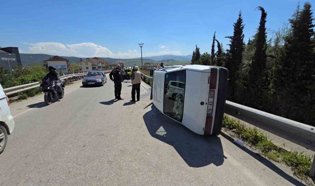 Köprüde kontrolden çıkan otomobil yan devrildi: Sürücü yara almadan kurtuldu