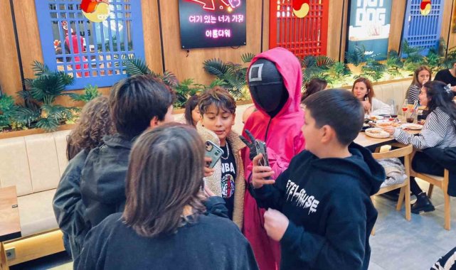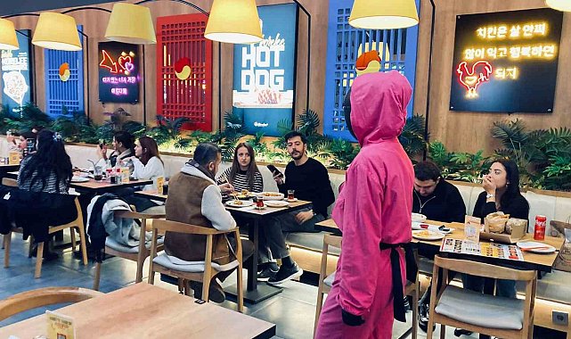 Ankara'da Kore mutfağından yemeklerin piştiği restoranda, izlenme rekorları kıran "Squid Game" dizisinin karakterleri yemeklerin servisini yapıyor.