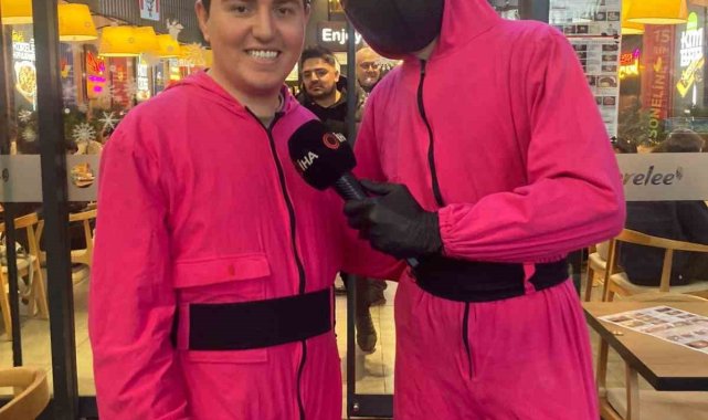 Ankara'da Kore mutfağından yemeklerin piştiği restoranda, izlenme rekorları kıran "Squid Game" dizisinin karakterleri yemeklerin servisini yapıyor."Squid Game" (Kalamar Oyunu) dizisi, dünya çapında izlenme rekorları kırarak büyük bir beğeni topladı. Güney Kore yapımı dizi, kültürel açıdan da dünyanın farklı noktalarına ihraç edildi. Ankara'da Kore mutfağında hizmet veren bir restoranda, dizideki oyuncu karakterleri yemek servisi yapıyor.Önce diziye ait bir müzik müşterilere dinletiliyor. Ardından yüzlerinde üçgen ve daire simgeleri taşıyan dizi karakterleri sahneye çıkıyor. Karakterler, dizideki davet kartlarını müşterilerin masasına bırakıyor. Ardından müşteriler dizinin etkisiyle gerilirken karakterlerin sipariş edilen yemekleri getirmesinin ardından derin bir nefes alıyor.Lezzetin ve dizinin buluştuğu restorana, Kore mutfağına ve kültürüne ilgi duyan çok sayıda vatandaş katılım gösteriyor. Yemeklerini yiyen vatandaşlar, dizinin karakterleriyle de fotoğraf çekinerek o anları ölümsüzleştiriyor."Kore trendi yükseldi"Restoranın sahibi Sefa Gülhan, İHA muhabirine açıklamasında, "Son zamanlarda Kore trendi yükseldi. Squid Game ile beraber tavan seviyeye çıktı. Restoranımızda böyle bir hizmet vermek istedik. Muhafızlarımız belli aralıklarla gelip yemeklerini dağıtıyorlar ve müşterilerin çok beğendiğini gördük. Bu da bizim müşterimizin hoşuna gitti" ifadelerini kullandı."Fotoğraf çekindikleri için yemeklerini dağıtamıyorlar"Vatandaşların ilgisinden memnun duyduklarını söyleyen Gülhan, "Bizim sıkıntımız fotoğraf çekindikleri için yemeklerini dağıtamıyorlar. Biraz problem oluyor ama biz memnunuz. Gelen müşteriler 'ne zaman gelecekler' diye soru soruyor. Kore yemeklerini sevenleri bekleriz. Dizinin de finalinin daha güzel olacağını düşünüyoruz" diye konuştu."Çelik çomak oynayacağız"Müşterilerden Önder Somuncu ise açıklamasında, "Arkadaşlara söylüyorum burası Türkiye, çelik çomak oynayacağız. Kore'nin yerel oyunu değil. Türkiye'de çocukların oynadığı yakar top, çelik çomak gibi oyunlar oynarsak varız" ifadesini kullandı."Paranın insanları neye dönüştürdüğü gösteriyor"Diziyi izleyen çocuklardan Tuna İsmet Akyol ise "Bu oyuncuları karşımda görünce biraz korktum açıkçası. Ben biraz korktum ve heyecanlandım. İkinci sezonda en sevdiğim karakter 'Thonos'du. Ölmesine çok üzüldüm. Dizi de çok kötü yerde sonlandırıldı. Kesinlikle izlenmesi gerekiyor dizi. Paranın insanları neye dönüştürdüğü gösteriyor" diye konuştu."Uzak doğu ülkelerinin yemeklerine bayılıyorum"Çocuklardan Kayra Gökalp ise "Fotoğraf çekildim hepsini paylaşacağım internette. Çok güzel oldu. Uzak doğu ülkelerinin yemeklerine bayılıyorum. Çok yiyor ve seviyorum. İkinci sezonun sonu biraz saçma bitti. Orada kesmemeleri gerekti. 3'üncü sezon bu sene çıkacağı için heyecanlıyım.Çocuklardan Ceren Yüksel ise "Arkadan şarkı çaldı. Ben aşırı gerildim, biraz korktum. Sonra fotoğraf çekindik" dedi.