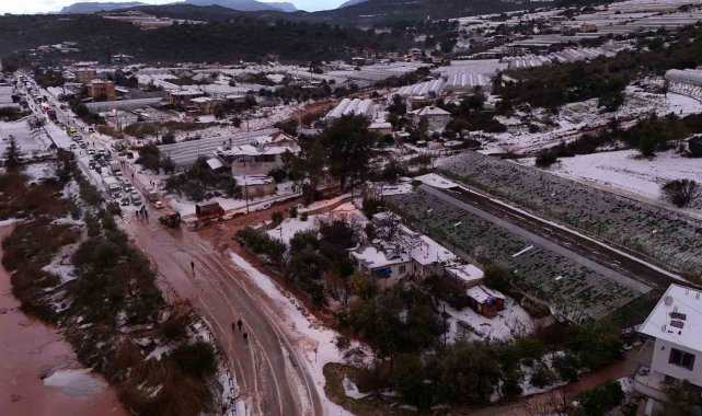 Antalya'nın Demre ilçesinde etkili olan dolu seralara zarar verdi, şiddetli yağış sele neden oldu. Dolu ve sel nedeniyle yollar ulaşıma kapanırken, denize akan çamur nedeniyle Demre sahilleri kızıla boyandı.