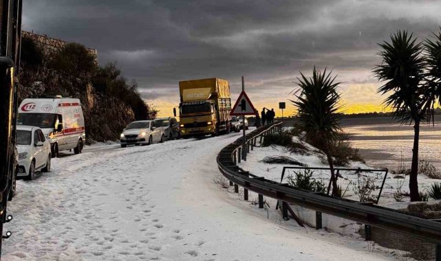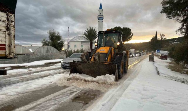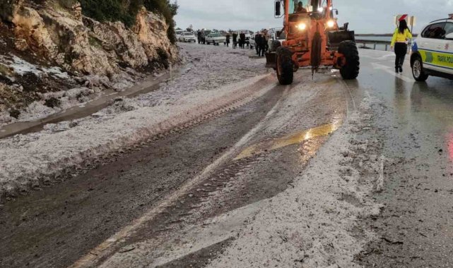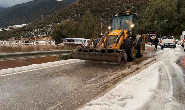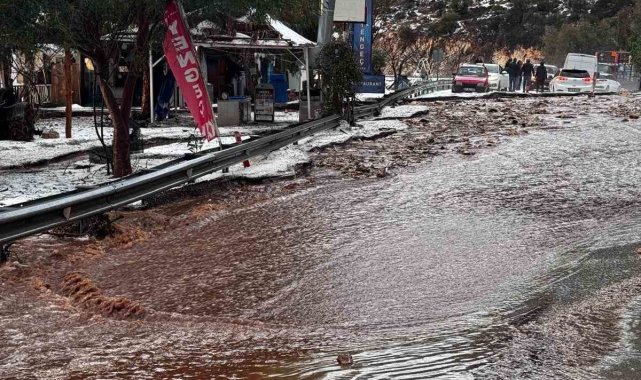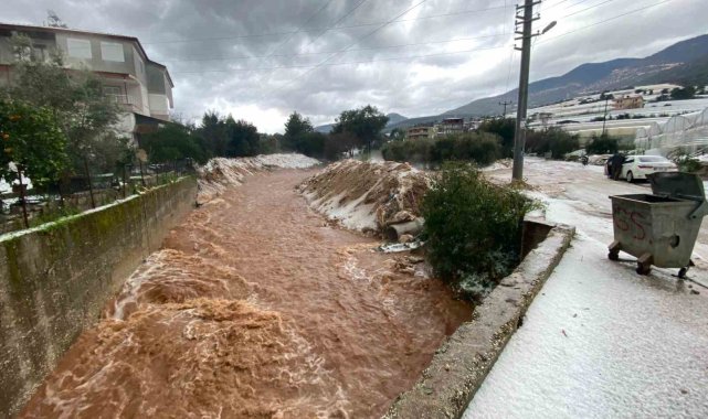 Antalya'nın Demre ilçesinde etkili olan dolu seralara zarar verdi, şiddetli yağış sele neden oldu. Dolu ve sel nedeniyle yollar ulaşıma kapanırken, denize akan çamur nedeniyle Demre sahilleri kızıla boyandı.Antalya'nın Demre ilçesinde şiddetli dolu ve sağanak etkili oldu. Şiddetli dolu ve yağmur nedeniyle özellikle cam seralar başta olmak üzere bölgede bulunan seralarda ciddi hasara neden oldu. Yağış sonrası sel meydana gelirken, denize akan çamur nedeniyle Demre kıyıları kızıl renge boyandı.Beymelek Mahallesi İskele mevkiinde dolu ve şiddetli yağış nedeniyle D-400 karayolu, saat 17.00 civarında yolda oluşan birikintiler nedeniyle 4 noktadan tedbir amaçlı trafiğe kapatıldı. Çok sayıda araç yolda kalırken, Antalya Büyükşehir Belediyesi'ne ait iş makinelerinin desteği ile yaklaşık 1.5 saatlik çalışmanın ardından karayolunda trafik tek şeritten kontrollü olarak sağlanmaya başladı.