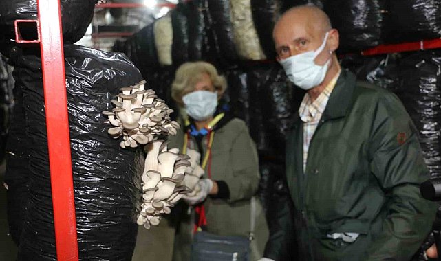 Körfez Belediyesi 60+ Aktif Yaşlanma Merkezi üyeleri, önce komposto üretim merkezini gezdi, ardından mantar üretim ünitesinde mantar topladı.