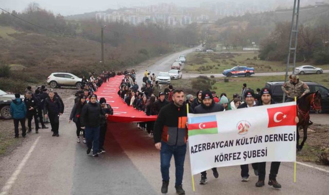 Körfez'de Sarıkamış şehitleri için yürüyüş düzenlendi. Dev Türk bayrakları ile gerçekleştirilen yürüyüşte şehitler için dualar edildi.