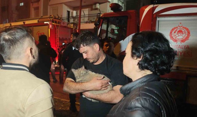 Antalya'nın Kepez ilçesinde 5 katlı binanın üst katındaki dubleks dairede çıkan yangın paniğe neden oldu. Alev ve dumanlar sebebiyle mahsur kalan kedi itfaiye ekipleri tarafından kurtarıldı.