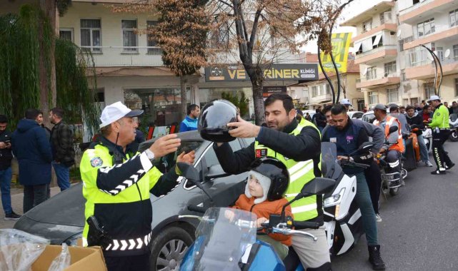 Korkuteli ilçesinde motosiklet sürücülerine kask dağıtıldı
