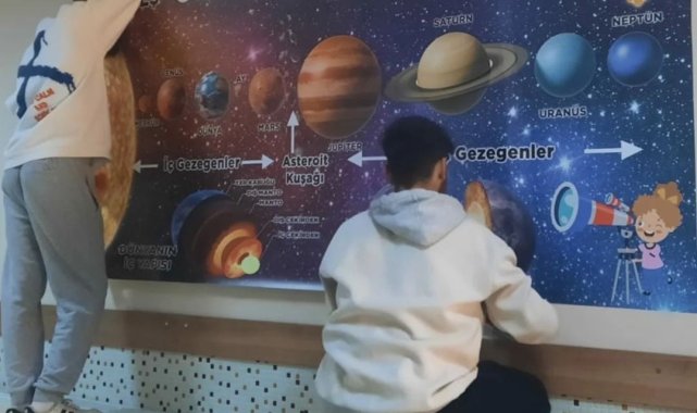 Köşk Mesleki ve Teknik Anadolu Lisesi Okul Müdür Yardımcısı Alev Aydın ve öğretmen Halis Özmen'in gözetiminde okul öğrencileri 'Meslek Lisesi Hayata Dokunuyor' sloganıyla Köşk Beyköy Polis Abla Ortaokulu duvarlarını bilgi afiş ve resimleriyle donattı.