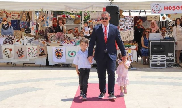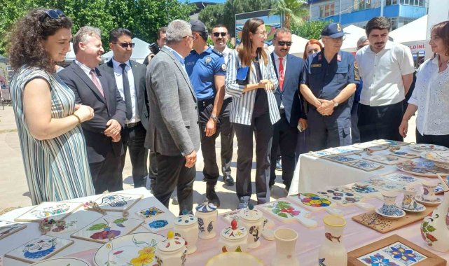 Açılış kurdelesinin kesiminin ardından protokol üyeleri, kent meydanında kurulan stantları gezerek kursiyerlerin el emeği göz nuru ürünlerini inceledi ve kurslar hakkında bilgi aldılar. El sanatlarından giyim ürünlerine aşçılık ürünlerinden takı tasarımlarına kadar birçok branşta kursiyerlerin eserleri büyük beğeni topladı.