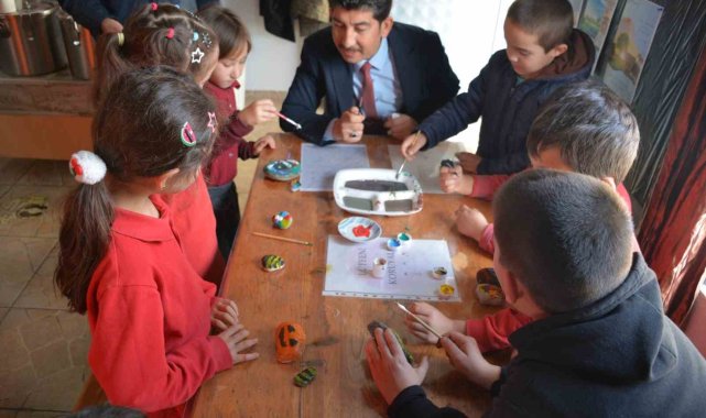 Muğla'nın Köyceğiz ilçesinde Milli Eğitim Müdürü Kerem Karahan Köyceğiz Demirli İlkokulu'nda düzenlenen taş boyama etkinliğine katıldı.