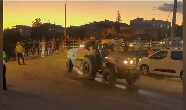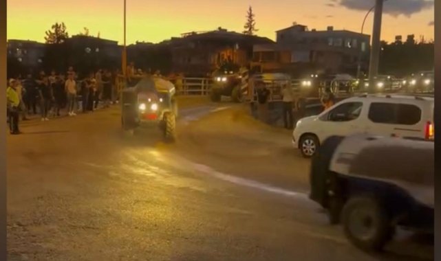 Köylüler yangın bölgesine traktörlerle su taşıdı