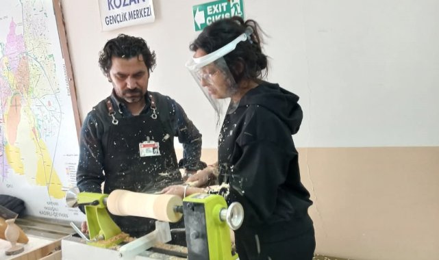 Kozan'da üniversite öğrencilerinin ahşap sanatı mesaisi