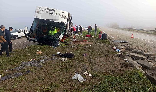 Adana'da kontrolden çıkan yolcu otobüsü refüje çarparak devrildi. Kazada 2 kişi hayatını kaybederken 17 kişi yaralandı.
