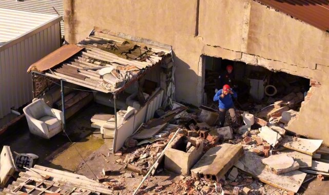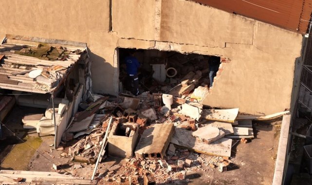 İstanbul'un Küçükçekmece ilçesinde sabah saatlerinde patlamanın yaşandığı bina makarna imalathanesi çıktı. Tüplü bir malzemeden kaynaklandığı tespit edilen patlamanın şiddeti gün aydınlanınca belli olurken, bir daire tamamen kullanılamaz hale geldi. Bina boşaltılarak mühürlenirken, patlamanın yaşandığı binadaki hasarın boyutu havadan çekilen görüntülere yansıdı.Olay, Küçükçekmece ilçesi Kartaltepe Mahallesi 1. Pehlivan Sokak'ta meydana gelmişti. Sabaha karşı büyük bir gürültüyle yaşanan patlamada dairede bulunan 2 kişi hafif şekilde yaralanmıştı. Yaralılar hastanede yapılan kontrollerinin ardından taburcu edildi."Patlama termosifon kaynaklı değil tüplü bir malzemeden meydana geldi"Olay yerinde incelemelerde bulunan Küçükçekmece Belediyesi Afet İşlerinden Sorumlu Belediye Başkan Yardımcısı Gökhan Aygün, patlamanın kaynağına ve binanın durumuna dair açıklamalarda bulundu. Aygün, ilk incelemelerde patlamanın kombi veya termosifondan değil, muhtemelen tüplü bir malzemeden kaynaklandığını tespit ettiklerini belirterek, "Sabah 04.58 sıralarında patlama ile ilgili bir ihbar alınıyor. İtfaiye ve gerekli ekipler geldiklerinde incelemelerine başlıyorlar. Bizim yaptığımız incelemede termosifon veya kombiden kaynaklı bir patlama olmadığını tespit ettik. Kombi korur şekilde yerde duruyor. Bizim değerlendirmemiz çatı tarafına yakın bir tüplü malzemeden kaynaklı olabilir" dedi."Binanın üst katında imalathane gibi kullanılan bir yer var"Başkan Yardımcısı Aygün, daire içerisinde makarna üretimi yapıldığını gözlemlediklerini belirterek, binanın iskansız ve ruhsatsız olduğunu ve bu nedenle tedbiren boşaltılarak mühürlendiğini açıkladı. Aygün, "Binanın üst katında imalathane gibi kullanılan bir yer var. Bina iskansız ve ruhsatsız. Biz binayı tedbiren boşaltarak mühürlüyoruz. Yukarıda yaşadıkları yerde makarna yapılıyormuş. Ama yaşam alanı olarak da kullandıkları bir alan olarak değerlendirildi ilk aşamada bununla ilgili yasal işlemleri ve takibi devam edilecek" ifadelerini kullandı.Patlamada yaralanan 2 kişinin hayati tehlikesinin bulunmadığı ve taburcu edildiği bilgisini veren Aygün, bina sahiplerine sadece temizlik için izin verileceğini, sonrasında ise binanın kentsel dönüşüm için takip edileceğini ekledi."Patlama uyuduğumuz sırada yaşandı"Patlamada yaralanan ve taburcu olan Gufur isimli daire sakini ise patlamanın uyudukları sırada olduğunu ancak neden kaynaklandığını kendilerinin de bilmediğini belirtti. Gufur, ailesiyle beraber yaşadıkları dairede makarna üretimi yaptıklarını doğruladı. Patlamanın yaşandığı bina, hasarın boyutunu ise dron ile çekilen görüntüler ortaya çıkardı.
