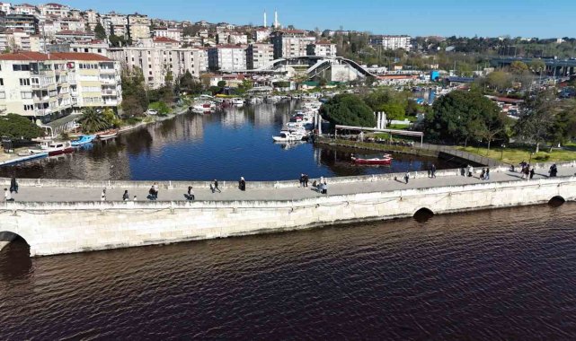 İstanbul'daki Küçükçekmece Gölü renk değiştirdi. Gölün, denizle buluştuğu alanda su kırmızıya dönerken, yaşanan renk değişimi dron ile görüntülendi.