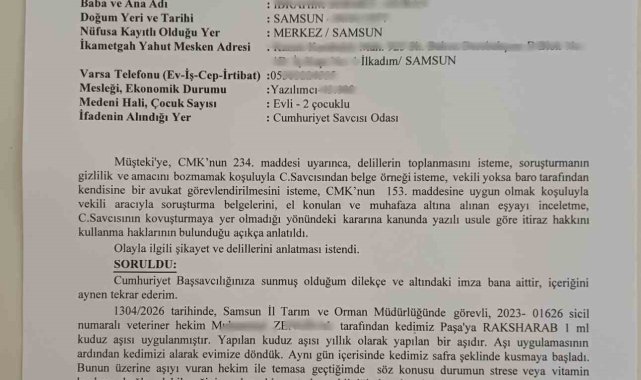 Samsun'da evcil kedilerinin kuduz aşısı sonrası öldüğünü iddia eden aile, CİMER'e ve savcılığa şikayette bulundu.