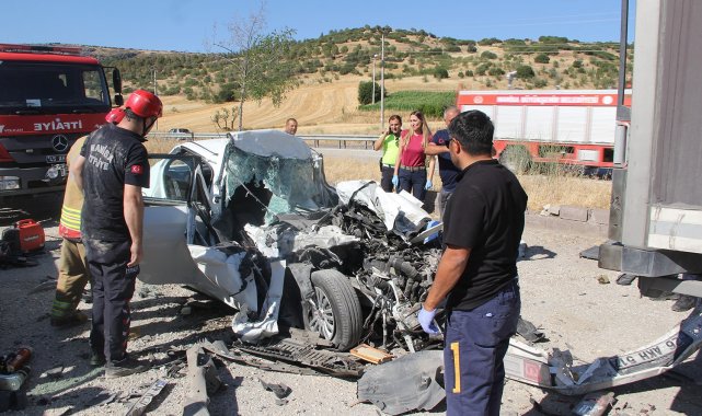 Manisa'nın Kula ilçesinde seyir halindeki otomobil, yol kenarında park halindeki tıra arkadan çarptı. Kazada baba ve 3 çocuğu hayatını kaybederken, kaza anı kameraya yansıdı.Kaza, saat 16.15 sıralarında İzmir - Ankara D300 karayolu Yurtbaşı Mahallesi'nde meydana geldi. Edinilen bilgilere göre, Uşak istikametinden Kula yönüne seyir halinde olan Rıdvan A. (36) yönetimindeki otomobil, Yurtbaşı Mahallesi girişinde bir lokantanın önünde park halinde bulunan 26 AKH 517 plakalı tıra arkadan çarptı. Çarpmanın etkisiyle otomobil hurdaya dönerken, araçta bulunan sürücü Rıdvan A. ile çocukları M.N.A. (12), Y.A. (9) ve M.T.A. (6) araç içerisinde sıkıştı. İhbar üzerine olay yerine çok sayıda sağlık, jandarma ve Manisa Büyükşehir Belediyesi İtfaiye Dairesi Başkanlığı'na bağlı kurtarma ekipleri sevk edildi. Ekipler, araçta sıkışan baba ve 3 çocuğunu uzun uğraşlar sonucu çıkardı. Sağlık ekipleri tarafından yapılan kontrollerde 4 kişinin de hayatını kaybettiği belirlendi.Olay yerinde yapılan incelemenin ardından cenazeler, Kula Devlet Hastanesi morguna kaldırıldı. Kaza ile ilgili geniş çaplı soruşturma başlatıldı.