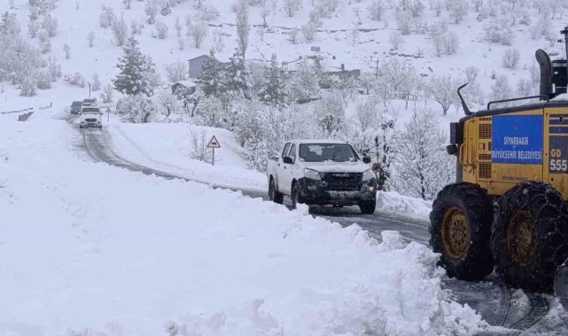 Diyarbakır'ın Kulp ilçesinde etkili olan kar yağışı nedeniyle kapanan kırsal mahalle yollarının yeniden ulaşıma açılması için Büyükşehir Belediyesi ve Kulp Belediyesi ekipleri sabahın ilk saatlerinde çalışma başlattı.
