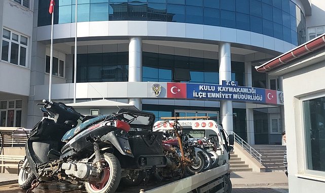 Konya'nın Kulu ilçesinde polis ekipleri motosiklet denetimlerine devam ediyor.Edinilen bilgiye göre, Kulu İlçe Emniyet Müdürlüğü asayiş ve trafik ekipleri tarafından ilçenin çeşitli cadde ve sokaklarında motosikletlere yönelik uygulamalar sürüyor. Yapılan denetimlerde ehliyetsiz sürücülere cezai işlem uygulanırken, motor ve şasi numaraları olmayan, evrak ve belgeleri eksik olan motosikletler çekici ile emniyet müdürlüğü bahçesine kaldırıldı.Denetimlere devam edileceği, eksikleri olan ve kurallara uymayanlara gerekli yasal işlemlerin yapılacağı belirtildi.
